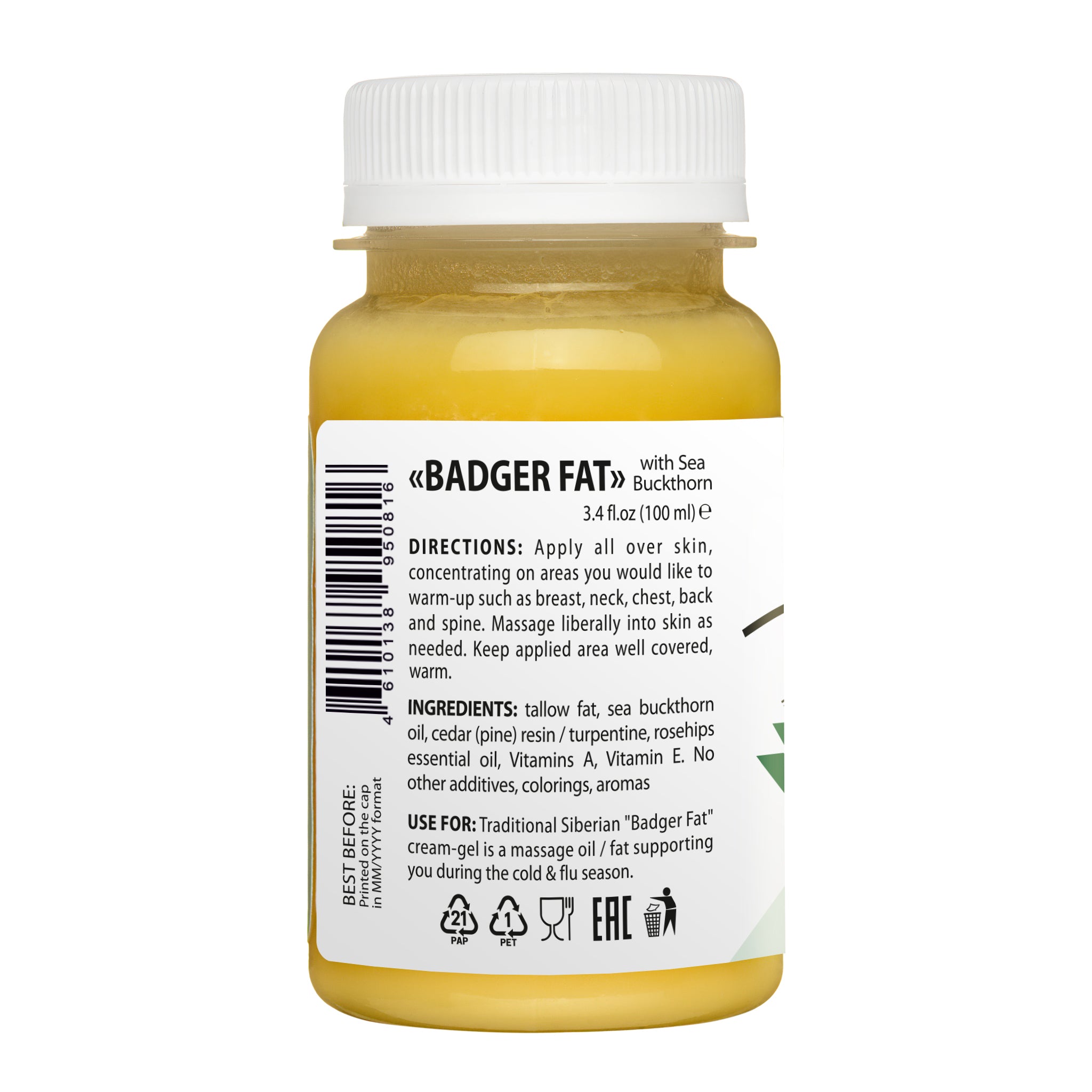 • Fórmula siberiana tradicional - Procedente de Altai Siberia, conocida por su grasa de tejón pura y de alta calidad