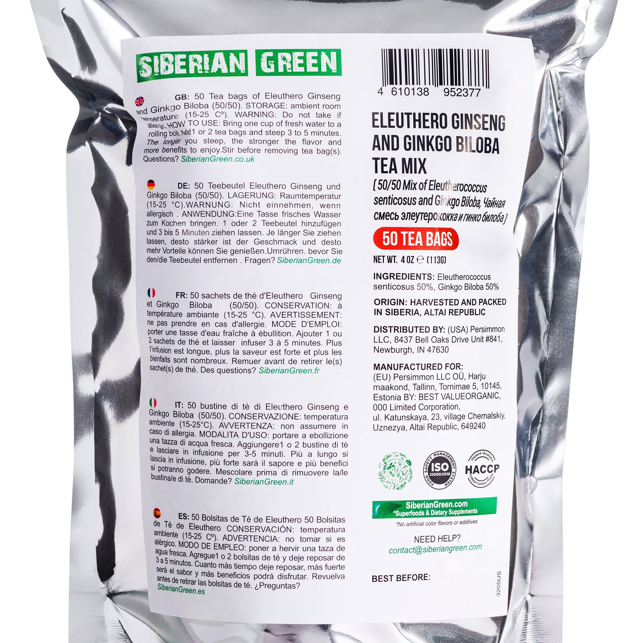 Experimente la perfecta armonía de la naturaleza con el Té Verde Siberiano de Ginkgo Biloba y Raíz de Eleuthero. Esta exclusiva mezcla de hierbas 50-50 procede directamente de la prístina República de Altai, en Siberia, y combina la riqueza terrosa de la raíz de eleuthero con las suaves y fragantes notas del ginkgo biloba. Cada taza es pura, natural y no contiene OMG, aromas artificiales ni aditivos, lo que garantiza la máxima calidad en cada sorbo.