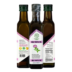Nuestro aceite es de una sola fuente, prensado en frío de semillas silvestres cosechadas de los paisajes indómitos de la región de Altai de Siberia. Es puro aceite de cardo mariano virgen extra sin refinar, repleto de nutrientes que fortalecen la desintoxicación del hígado, limpian el sistema digestivo y reponen la piel.